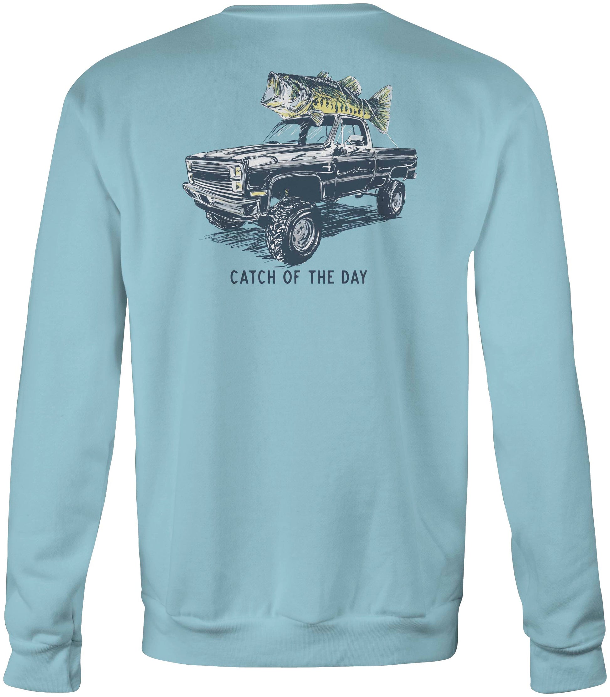 Adult Crew Neck Fleece Catch of the Day V4 PU Bass - Sky Blue