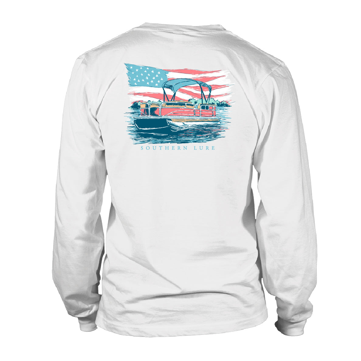 Youth Long Sleeve UV50 Performance Tee Shirt - Patriotic Pontoon - White